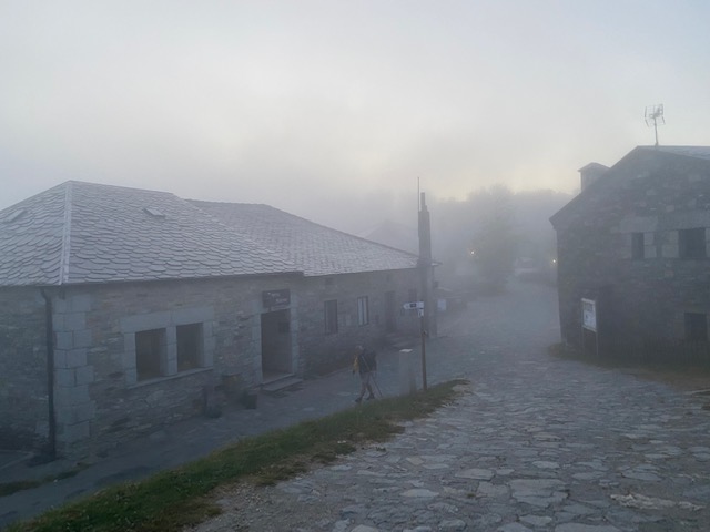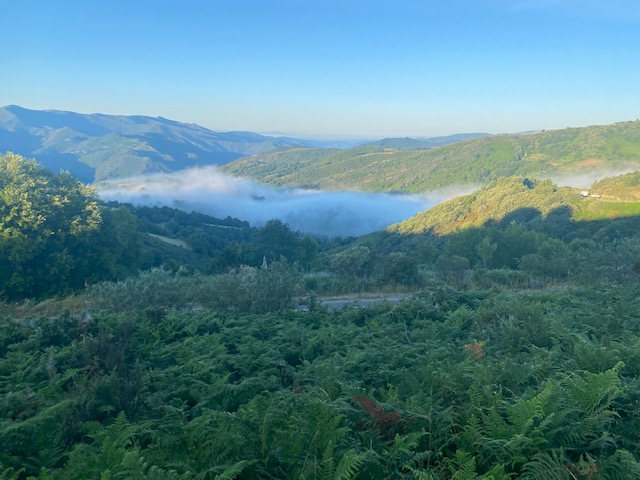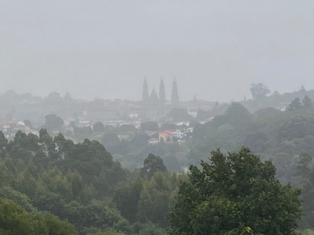 Dat er de volgende ochtend mistvelden tussen de bergtoppen hangen, is dan ook haast exemplarisch voor de situatie. Elke dag, elke nieuwe etappe is gehuld in nevel. Maar met nog zes etappes voor de boeg, voelen we allemaal het nakend einde van die buitengewone ervaring. Het einde van onze tocht komt in zicht. In Santiago is er geen mist meer om een nog onontdekte wereld mee toe te dekken. In Santiago is het klaar. Daar slaat iedereen zijn eigen weg in. Wacht de andere wereld. Dan begint het pas, weet iedere pelgrim.