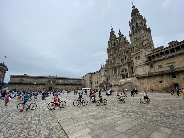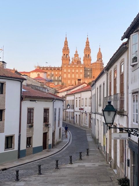 Huib bereikt bijna zijn einddoel maar geniet ook nu al met volle teugen. Van het groene landschap, het gevoel van vrijheid, de band met andere pelgrims, van etappes gehuld in nevelen. De laatste 21 kilometers zijn een peulenschil – maar de drukte is behoorlijk omschakelen. Tot Huib in de diepte de kathedraal van Santiago spot.