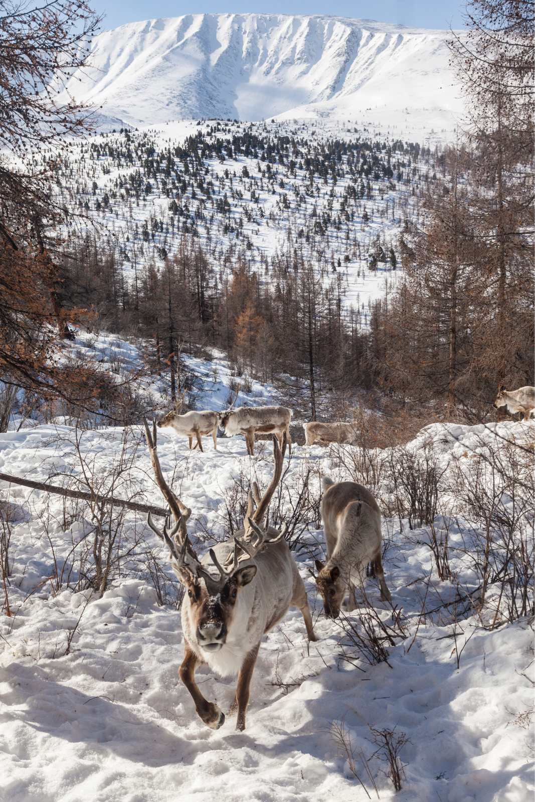 Nooit eerder reisde een vrouw met hen mee. En nooit eerder een westerse fotograaf. Ook toeristen zien de rendierherders op de taiga van Noord-Mongolië maar sporadisch. Fotograaf Colin Monteath ging met de Mongoolse Saraa Munkhbayar op pad, op zoek naar de herders en hun kudde. Vanuit Ulaanbaatar, de hoofdstad van Mongolië, is het meer dan een dag rijden naar het Dood Tsagaan- meer, dat midden in het gebied ligt waar fotograaf Colin Monteath de rendierherders zal ontmoeten. Een uithoek, ver van de bewoonde wereld. In de zomer kan de temperatuur tot veertig graden stijgen, in de winter precies het tegenover gestelde dalen. Afstanden zijn hier relatief. Vierentwintig uur rijden kan zomaar veertig uur worden, afhankelijk van de weersomstandigheden.