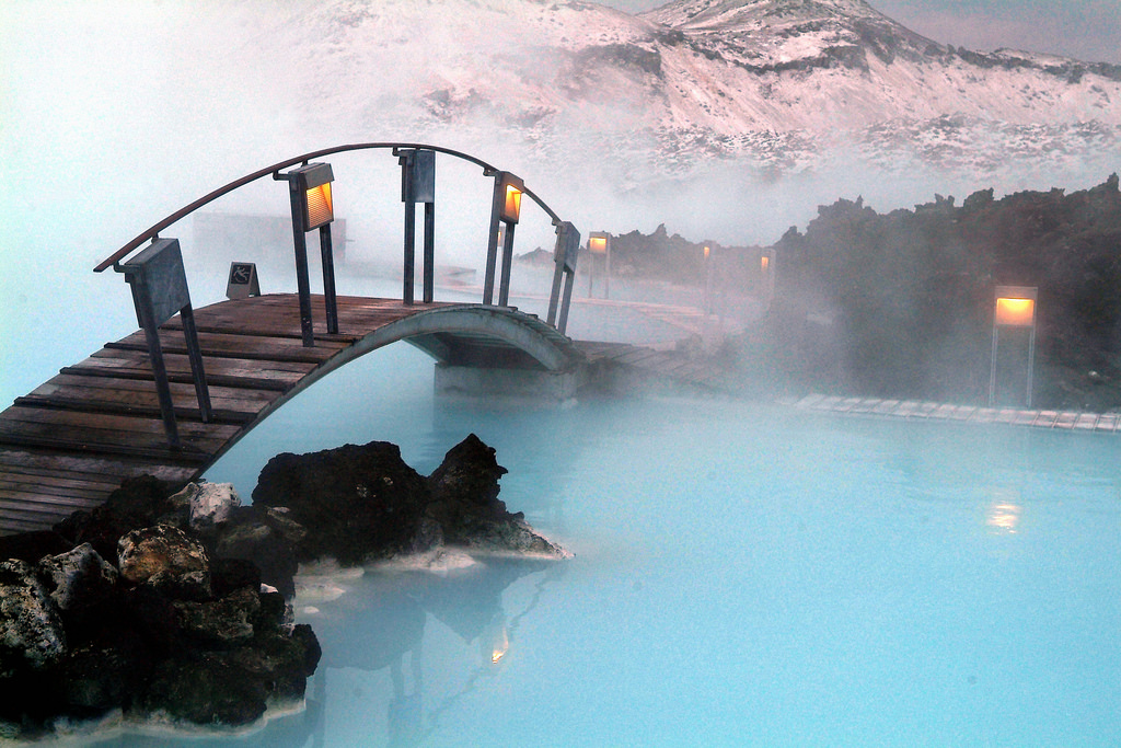 In het hart van een lavaveld bevindt zich de Blue Lagoon. Het bad is ontstaan uit geothermisch verwarmd zeewater. Het water heeft een heerlijke temperatuur van ongeveer 40 graden. Als je over het water kijkt en de damp van het water omhoog ziet kringelen, lijkt het alsof je in een sprookje terecht bent gekomen. Het water is rijk aan mineralen, zoals silica en sulfer. Het water van de Blue Lagoon is daarom heilzaam voor mensen met huidproblemen. Foto’s: Pinterest