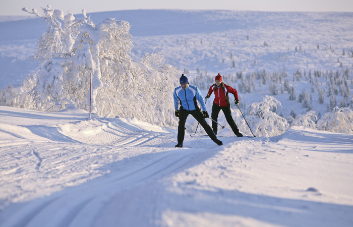 Voor het echte winteravontuur moet je in Fins Lapland zijn. Ver boven de poolcirkel, in een ruige en bevroren wereld, kent de wintersport er vele gezichten. Een tocht met een sneeuwscooter, bijvoorbeeld. Of op pad met een span husky’s. En anders lekker langlaufen, skiën of, heel relaxed, een ochtend ijsvissen. Kraakheldere luchten, oogverblindend wit, tintelende vrieskou; winter in Fins Lapland betekent ook écht winter. Zodra we voet aan grond zetten in Ivalo is het duidelijk dat boven de poolcirkel sneeuw en ijs de dienst uitmaken. Het eindeloos lege landschap vormt van oktober tot mei een poedersuikerparadijs. Onze bestemming is Saariselkä, het meest noordelijk gelegen wintersportresort van Finland. Wintersporters kunnen er dag en nacht over de sneeuw glijden. Het dorp telt liefst 200 kilometer aan loipes, waarvan 34 kilometer verlicht! Het merendeel van de tochten begint pal voor de deur van het hotel of de vakantiewoning. Vlakbij liggen ook de Kaunispää en Lisakkipää, twee bergen voor zowel gevorderde als ook beginnende skiërs en snowboarders. Rijen bij de skiliften zijn er niet of nauwelijks. Het contrast met de behoorlijk drukke Alpen is levensgroot.