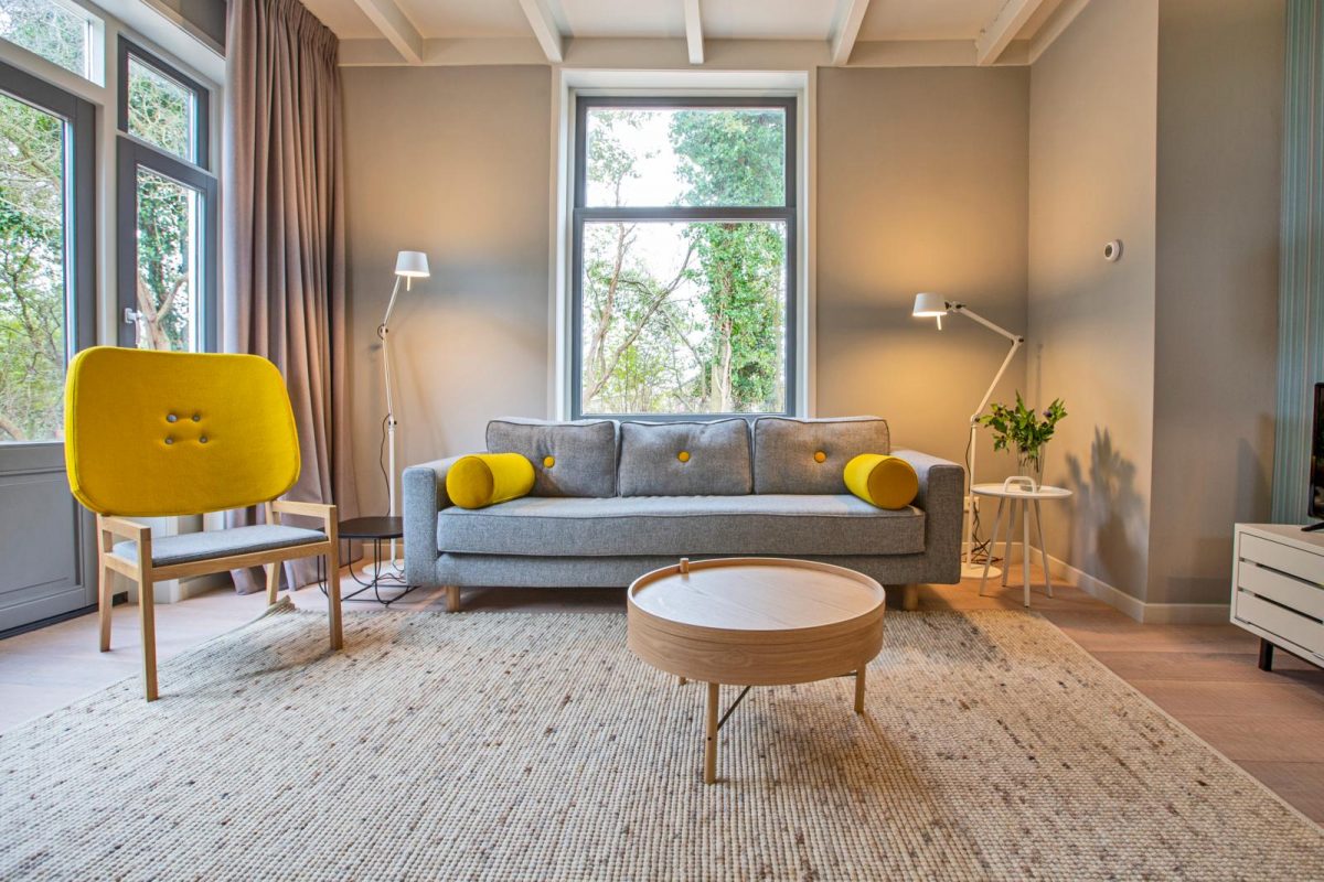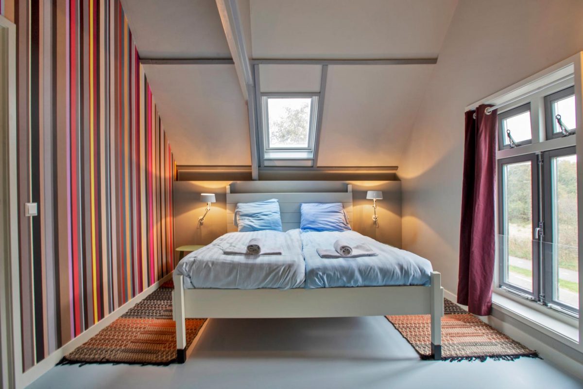 Hoe leuk is het wanneer je mag blijven als alle andere badgasten weer naar huis gaan? Langeveld, ons logeeradres, is een voormalige jachtopzienerswoning op loopafstand van de strandopgang waaraan het huisje zijn naam dankt: de Langevelderslag. De historische vakantiewoning ligt in Boswachterij Noordwijk, dat onderdeel is van natuurgebied Hollands Duin. Een heerlijke plek om vakantie te vieren. Hans Visser, rentmeester van Het Zuid-Hollands Landschap, over de historie van het huis: “Begin twintigste eeuw werd de jachtopzienerswoning gebouwd voor rekening van graaf Van Limburg Stirum. Na ruim zestig jaar kwam het in bezit van Het Zuid-Hollands Landschap en werd het tot 2015 bewoond door een van onze boswachters. In die tijd is er een stuk aangebouwd, waardoor er ruimte ontstond voor een grote woonkeuken en een heuse ‘opkamer’; een extra zithoek boven op de voormalige kelder.” Een bakstenen wand, oorspronkelijk een buitenmuur, draagt bij aan de gezellige sfeer in de lichte vakantiewoning. De inrichting is fris, met enkele kleurrijke elementen. De vrolijke stoelen in de woonkeuken en de gele accenten in de woonkamer zijn zonnetjes in huis. Op dagen dat het buiten niet zulk stralend weer is, zorgen ze – samen met de houtkachel – voor warmte.