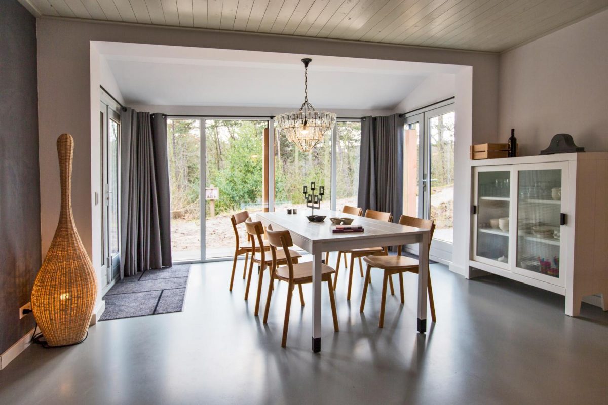 Het stormt behoorlijk als we naar Terschelling varen. Dat maakte de overtocht al tot een belevenis. Onze auto mag alleen mee naar Koekoekspaal om uit te laden. Daarna parkeren we hem op een parkeerplaats van Staatsbosbeheer. Ver lopen is het niet, zo’n 400 meter. Tip: zorg dat je bij daglicht aankomt, dan is de locatie gemakkelijk te vinden. Wij hadden de laatste boot en in het donker is het net wat lastiger.  Het huis ligt op een prachtige locatie, vlak bij West-Terschelling, in een uniek stukje natuur. Beneden is een terras met een buitenkachel, maar het mooiste uitzicht heb je vanaf het ‘kraaiennest’: het grote houten terras op de eerste verdieping dat je via een trap bereikt. Vanaf daar kijk je uit over de omliggende duinen.  Niet alleen de ligging is bijzonder, dat is ook de indeling van het huis. Je kunt via twee plekken naar binnen. Je komt of via de langgerekte keuken in de woonkamer, of rechtstreeks. Daar valt je oog eerst op de houtkachel en vervolgens gaat je blik meteen weer naar buiten… Door de grote glazen pui waan je je praktisch ín het bos.  Een tweepersoonsslaapkamer is beneden, boven zijn de luxe badkamer en slaapkamer nummer twee.  Koekoekspaal Koekoekspaal
