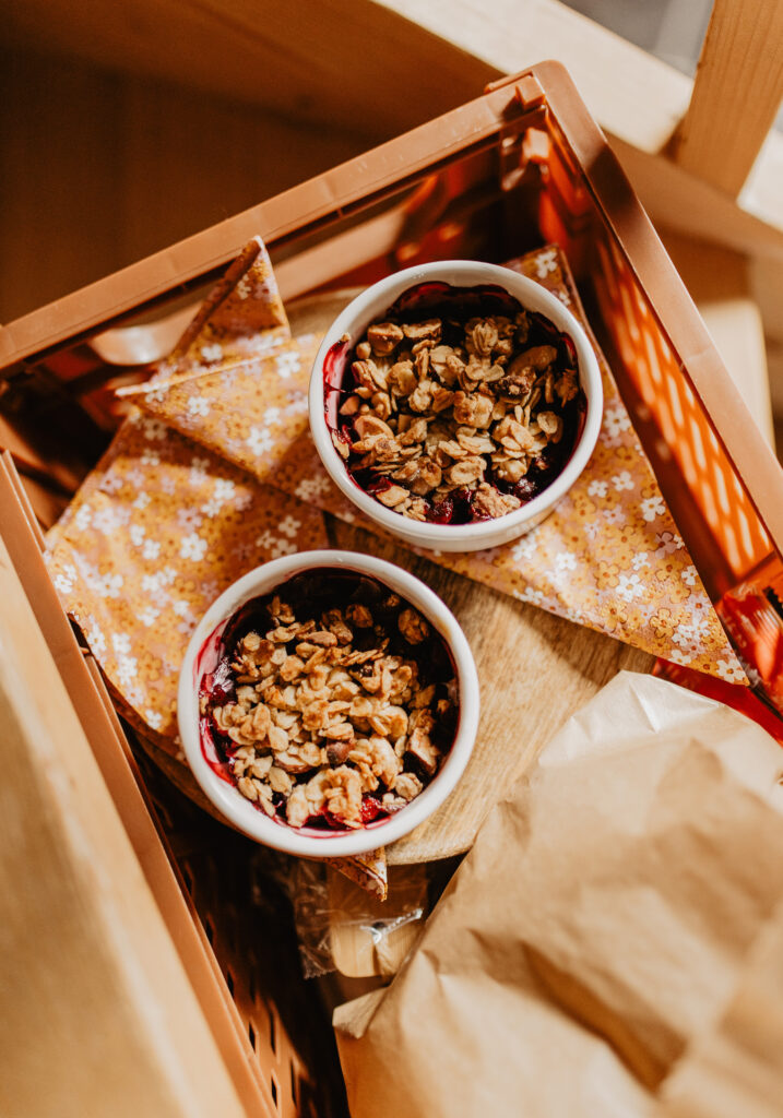 De volgende morgen worden we gewekt door het zonlicht dat zijn weg vindt door de ramen. Het belooft een stralende dag te worden, dus kleden we ons snel aan en lezen we wat aan de tafel in het gezellige keukentje. Dan wordt er op de deur geklopt en komt Inge binnen met een kratje met ons ontbijt. Vers fruit, lekkere granola, yoghurt, verse jus, broodjes: aan alles is gedacht.