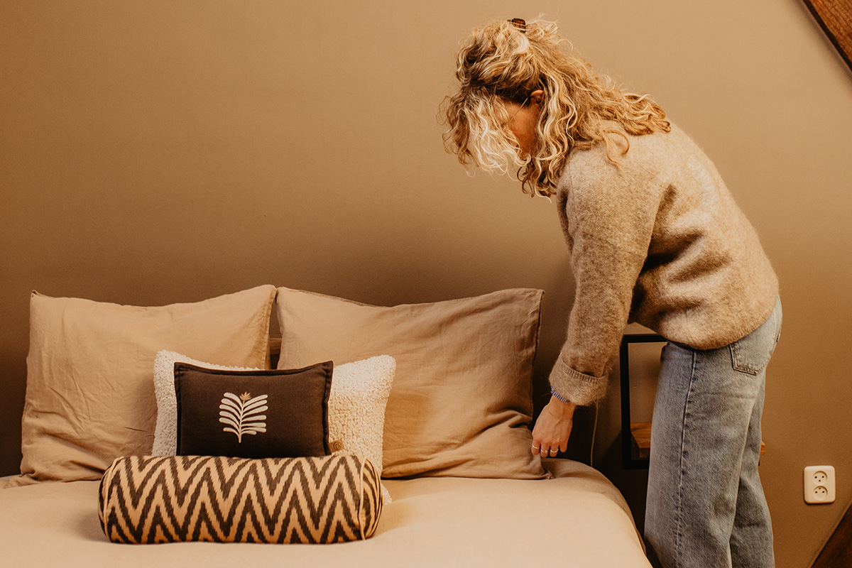 Wanneer we op de grote rode deur kloppen, doet eigenaresse Inge enthousiast open. Inge begon de B&B met haar man Michel, die helaas is overleden. “Mijn man kwam uit dit gehucht. We woonden samen met onze twee zoons in het westen van het land, maar besloten in 2017 terug te keren naar zijn geboortegrond. Toen we deze boerderij vonden, waren we meteen verliefd.” De ruimte van B&B Brie – in het voormalige knechtenverblijf – was al grotendeels verbouwd, maar in Vakantieloft Koestal moest nog veel gebeuren. Inmiddels worden beide appartementen al een aantal jaar verhuurd.