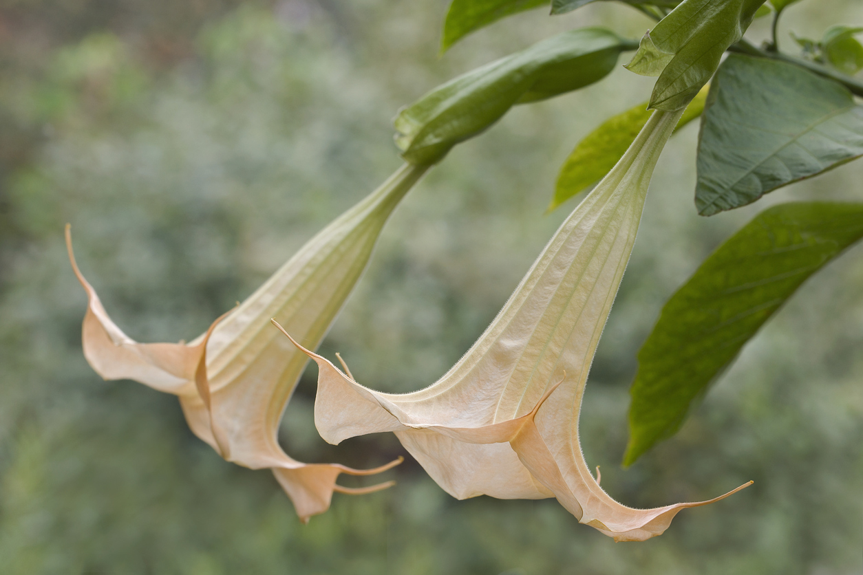 Hij mag dan gigantische bloemen hebben, een bijenlokker is deze plant niet, aldus drachtplanten.nl. De bloemen zijn te groot, waardoor de bijen teveel moeite moeten doen om bij de nectar te komen. Verder is alles aan Brugmansia giftig, niet zo wonderlijk gezien zijn familie. Die giftigheid zit ‘m in stoffen zoals hyoscyamine en scopolamine. Dat gezegd hebbende, zolang je ‘m niet eet en geen huisdieren hebt die dat doen, kun je met een gerust hart genieten van zijn bloemenpracht. Huidcontact met deze plant heeft namelijk geen gevolgen, aldus deze handige brochure van giftige planten.