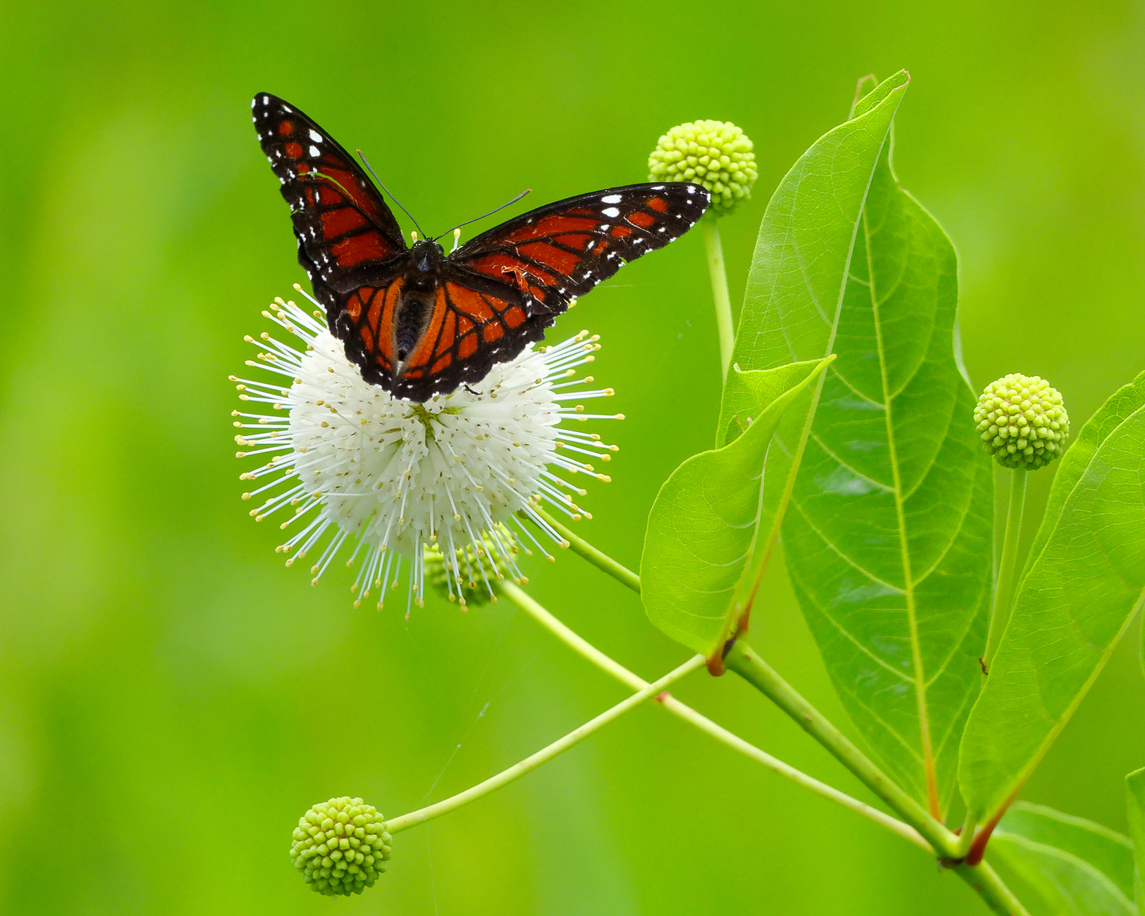 De kogelbloem bloeit de zomer lang met opvallende kogelvormige bloemen die verkleuren van frisgroen naar roomwit in de zomer, en in de herfst naar roestbruin. Dan verschijnen de zaadbollen, die ook knap zijn om te zien. Je hebt dus meer seizoenen plezier van deze heester. En met jou de vlinders en bijen, want die zijn gek op de zoet geurende bloemen van deze sierheester.