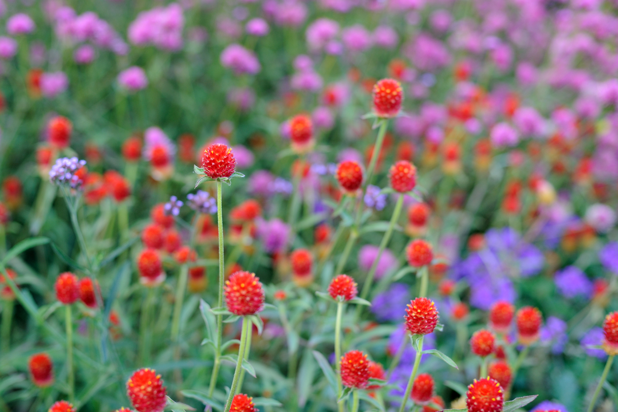 ‘Strawberry fields’ – zo heet de rood bloeiende kogelamarant. De bloemen lijken dan ook net allemaal aardbeien op steeltjes. Die ‘gewone’ amarant is bekender dan de bolronde kogelamarant. Maar wij zetten nu even de kogelamarant in het zonlicht. Omdat die óók heel leuk is, als snij- en droogbloem. Houd je niet van rood? Hij komt ook in andere tinten, zoals roze, paars en wit.