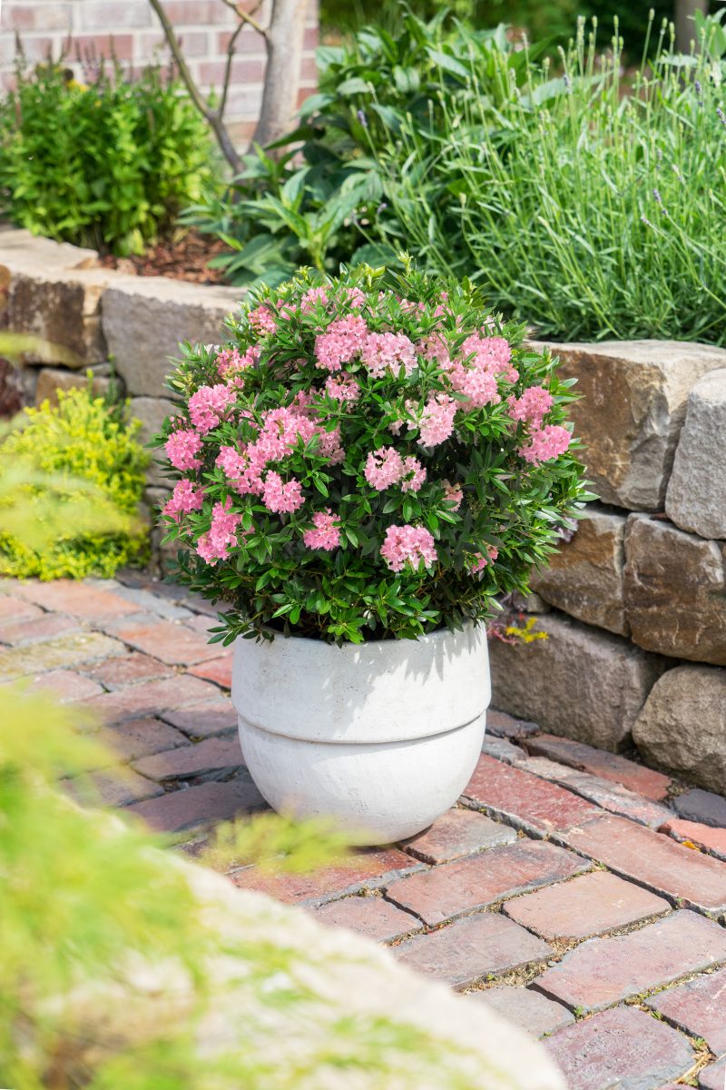Op het eerste oog lijkt het een minivariant van een buxus – maar de Bloombux is toch echt een rhododendron. Een mini-rhododendron wel te verstaan, met maxi-bloemen. Het is tenslotte niet voor niets een rhododendron. Met deze vroege zomerbloeier doe je niet alleen jezelf maar ook vlinders en hommels een groot plezier. En dankzij zijn bescheiden formaat kun je ‘m ook prima kwijt in een kleine tuin. Of in een pot, op je balkon of (dak)terras.
