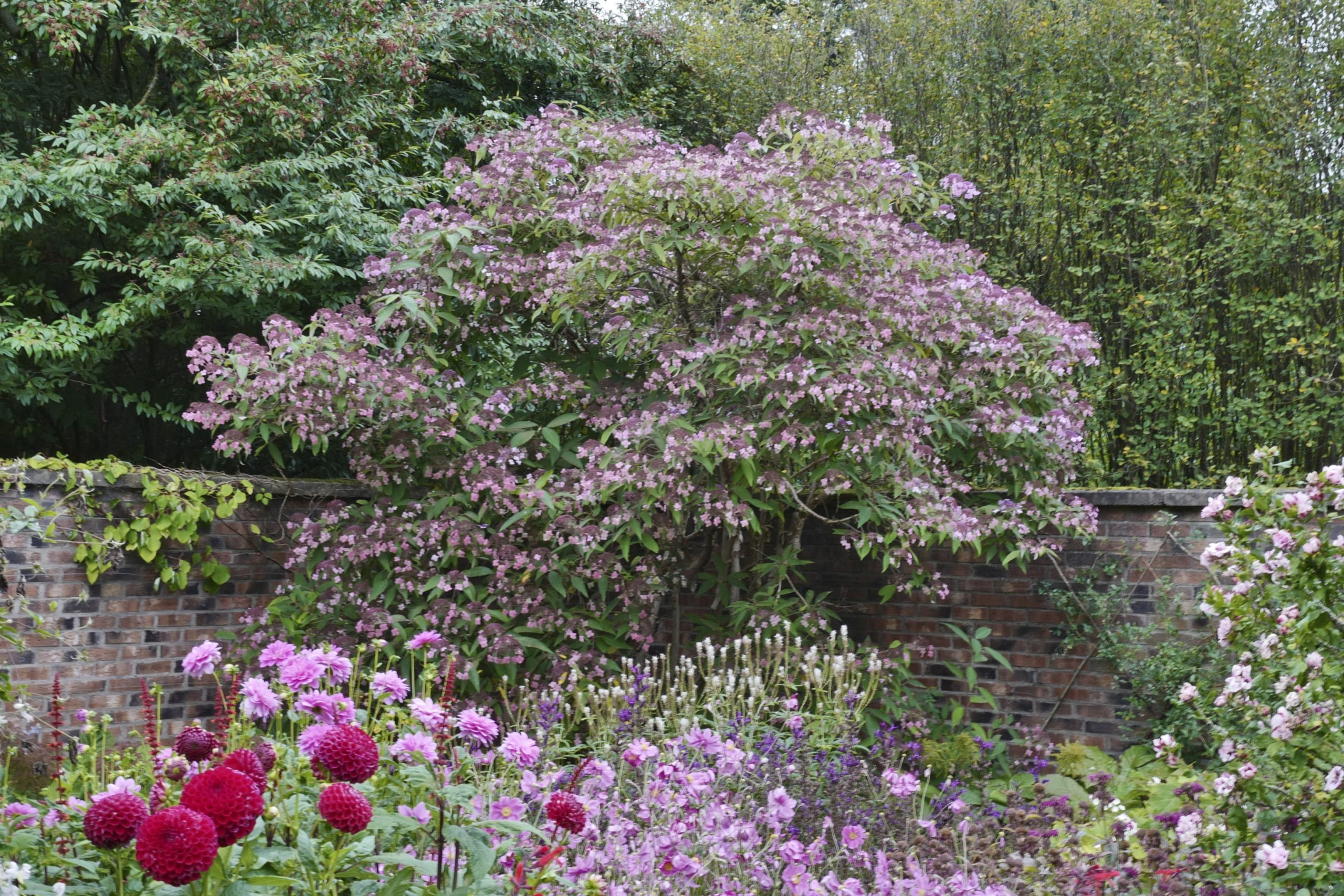 “Als combinatieplant met Japanse esdoorns, oprijzend uit een kruidlaag met geweldenaars als de herfstbloeiende Aster divaricatus ‘Beth Chatto’ of voorjaarsbloeiers als Brunnera macrophylla ‘Jack Frost’. Hydrangea villosa wordt uiteindelijk wel een flinke plant en snoeien is niet helemaal zijn ding, dus houd er rekening mee dat je tenminste anderhalve vierkante meter moet reserveren voor deze hortensia. De bloei begint vrij laat in de zomer en de bloemen zijn bij insecten behoorlijk populair. Alleen de Hydrangea aspera ‘Kawakami’ wordt misschien nog beter bevlogen. Door de transparante bloemschermen en de wat open groeivorm, maakt Hydrangea villosa ook geen massieve indruk, iets wat veel andere hortensiasoorten wel doen. In een wat natuurlijker tuinbeeld is deze soort dan ook goed te gebruiken.
