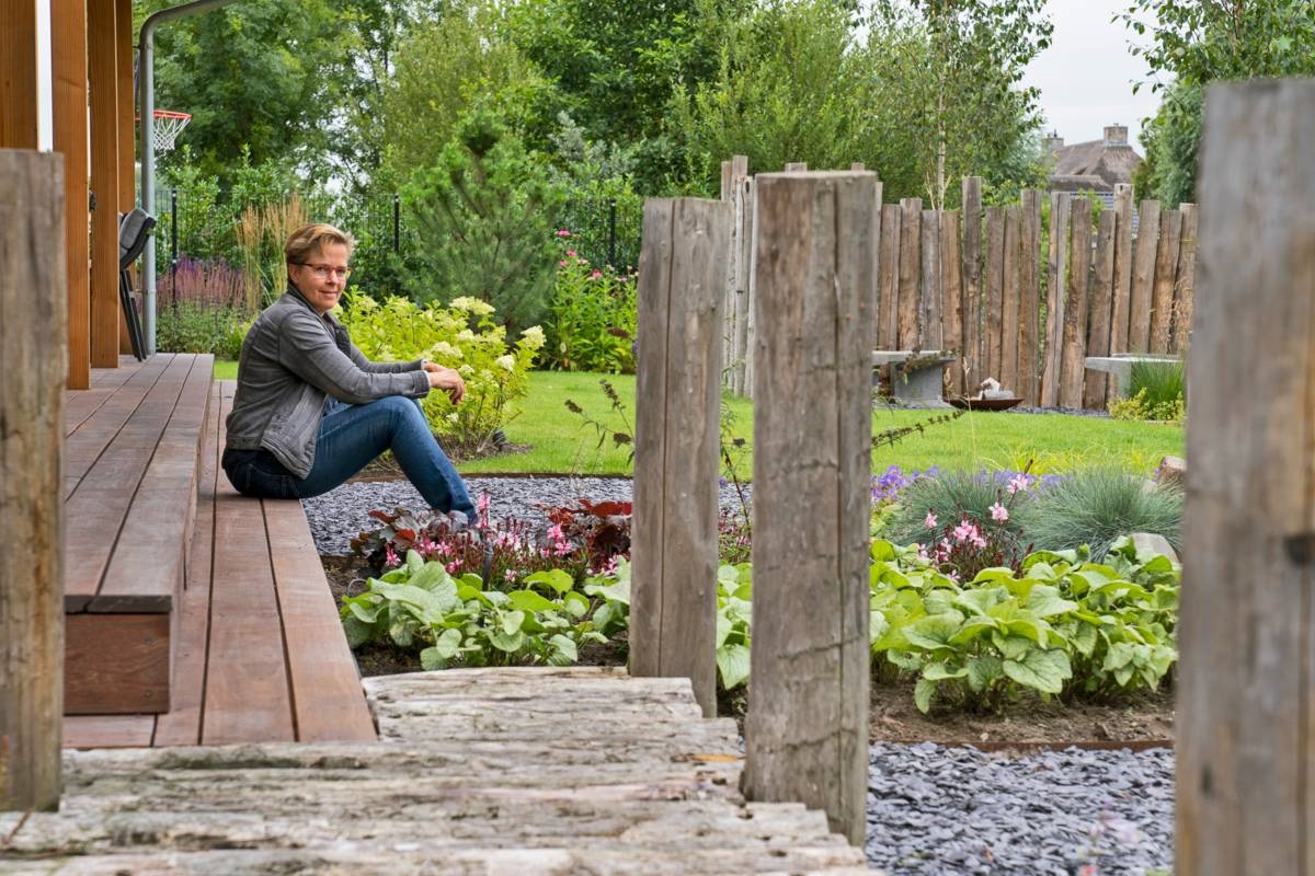 Marion: “Een beplante wadi ziet er heel natuurlijk uit. In het begin lijkt het een vijver. Het is een ondiepe geul. Onderin liggen infiltratieplaten van steenwol die het water eerst vasthouden en dan geleidelijk afgeven aan de tuin. Over die platen komt een laag zand, grind of grond waarin je vaste planten zet. Je kunt er ook gras op laten groeien, ik geef de voorkeur aan een bloemige wadi. Na een jaar is hij al onderdeel van de borders en na twee jaar is hij lekker vol gegroeid en hoort hij bij je tuin.”