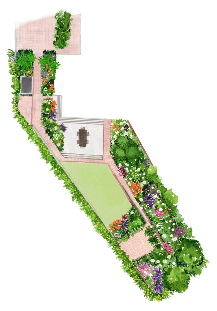 - Tuinstijl: moderne countrytuin met een landelijke beplanting waarin uitschieters in lengte en kleur.