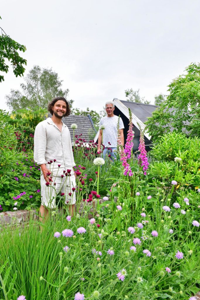 Het was een verwilderde boel, de nieuwe tuin van zijn oom en tante, maar daar wist tuinontwerper Jelle Koot wel raad mee. Goedgevulde borders bedacht hij, muurtjes van oude gevelstenen en een gazon als zichtlijn naar het omringende weiland. Een moderne countrytuin.