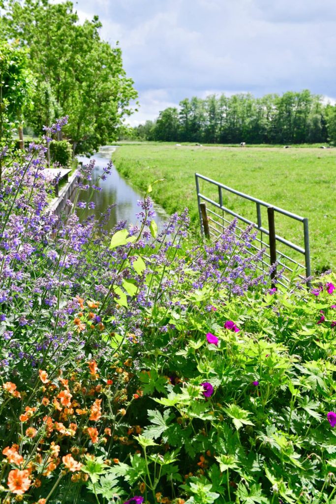 - Ligging: rondom een vrijstaande, landelijke woning met een houten aanbouw, grenzend aan weiland en een sloot.