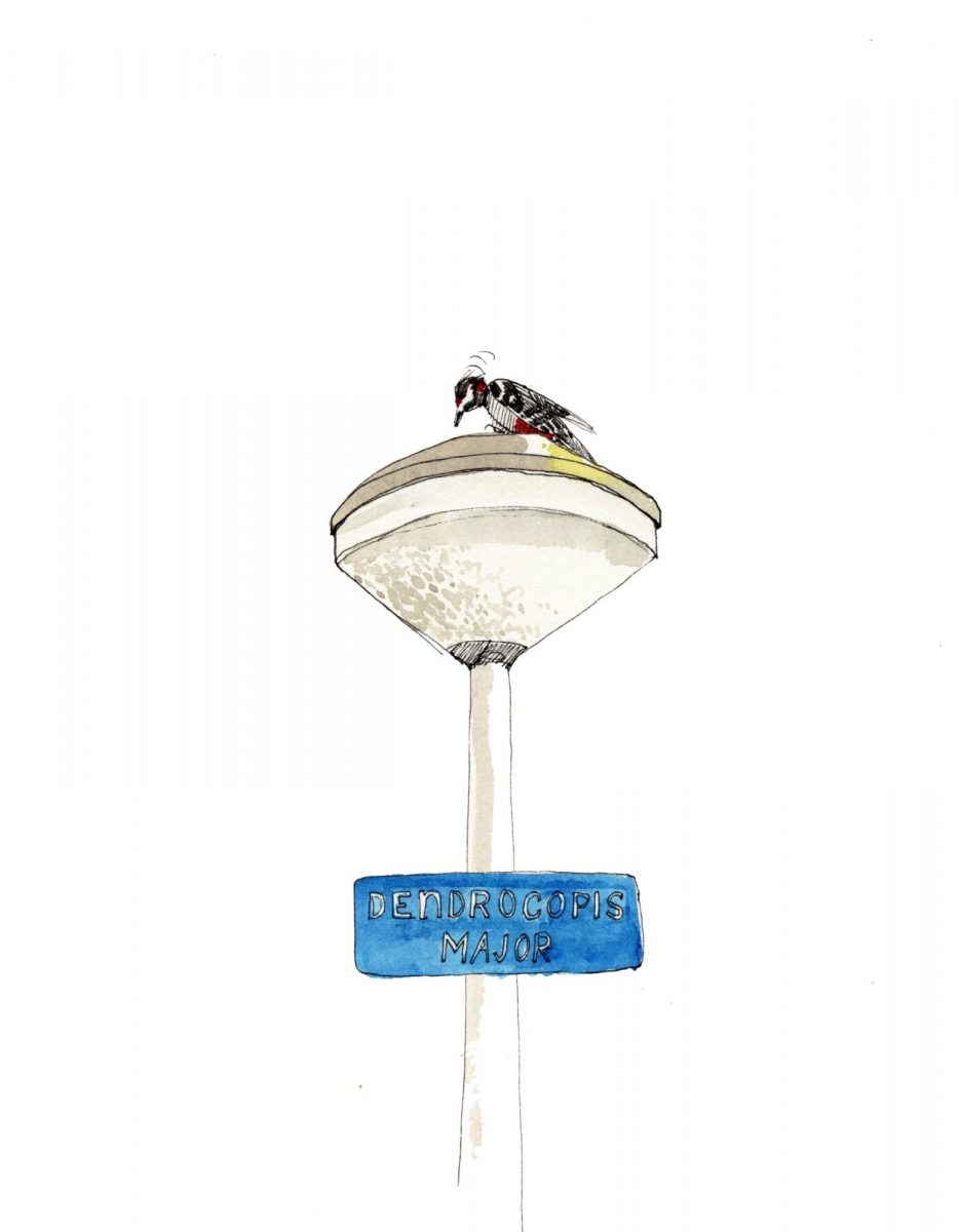 Ik schrok vorige week wakker van een keiharde roffel. Wat een herrie! Het was de eerste keer dat ik het hoorde. Welke gek was zo vroeg in de ochtend al aan het klussen? Ik schoot in mijn sloffen, trok mijn jas aan en ging de tuin in om uit te vinden waar het geluid vandaan kwam. Ah, de dader betrapt! Het was de grote bonte specht die zat te roffelen op de lantaarnpaal recht tegenover mijn huis. Hij vond dat kennelijk wel lekker hard klinken, beter nog dan een holle boom. Met de roffel geven de spechten hun territorium aan. Je zou verwachten dat de specht er koppijn van krijgt. Maar maak je geen zorgen. De kop van de specht is schokbestendig. Sponsachtig bindweefsel tussen snavel en schedel vangt de ergste klappen op. Sinds gisteren heeft de specht ook de zinken dakrand ontdekt, pal boven mijn slaapkamerraam. Ik raak er al aan gewend. Het maakt me ook wel vrolijk. Het geroffel is het teken dat het voorjaar in aantocht is en dat het spechtenpaar weer bij mij in de buurt wil nestelen. Daar heb ik niks op tegen.