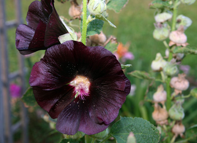 Houd er rekening mee dat de stokroos zo’n twee jaar blijft staan. Dit komt doordat de plant hierna vaak roestschimmel krijgt, waardoor ze niet meer mooi blijven. Zodra aan de bloemstengels donkerbruine bollen -of zaaddoosjes- komen, kun je die openen. Daar zitten de zaden in voor nieuwe stokrozen. Deze kun je zaaien zoals bij punt twee hierboven beschreven wordt. Het kan ook goed zijn dat de stokroos zichzelf uitzaait. Overigens krijgen deze nieuwkomers niet automatisch dezelfde kleur als de moederplant. Je kunt dus (aangenaam) verrast worden. stokroos - zwarte bloem