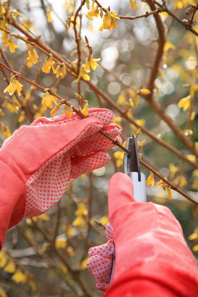 Zet voor een verjongingskuur de schaar in de nu uitgebloeide, vroegbloeiende heesters, zoals Forsythia, schijnhazelaar en struikkamperfoelie (Lonicera fragrantissima). Knip een paar uitgebloeide takken tot laag boven de grond weg. Uit het hart van de plant groeien nieuwe takken, deze bloeien over twee jaar. Zo verjong je de plant.