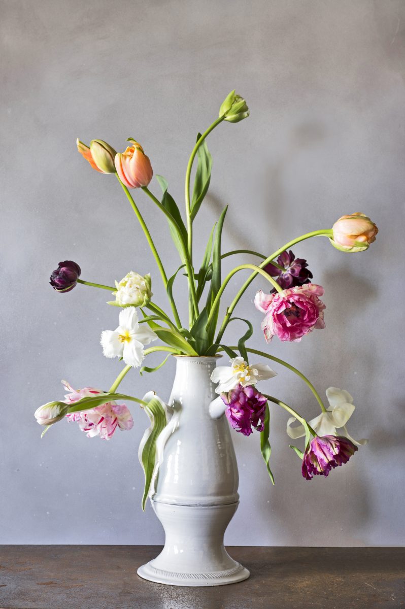 Met decoraties van tulpen is het al snel een beetje voorjaar in huis. Met deze twee prachtboeketten zelfs een beetje boel voorjaar in huis. Wij vertellen je hoe we ze maakten – en met welke tulpen.