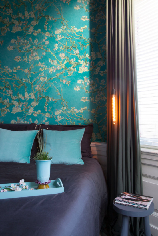Dit romantische fotobehang met prachtige handgeschilderde bloemen geeft iets unieks aan je slaapkamer. Hij is gemaakt in samenwerking met het Van Gogh museum Amsterdam en is verkrijgbaar in verschillende kleuren. €49.95 BN Walls