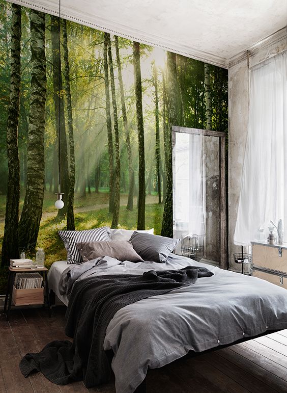 Als je naar deze muur kijkt, kun je de frisse boslucht bijna ruiken! Daarnaast maakt de combinatie van verschillende groene tinten een kleurrijk geheel van je slaapkamer. Vanaf €31.00 MuralsWallpaper