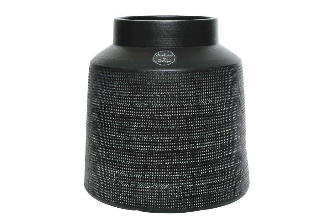 Stoer is deze matzwarte terracotta vaas met grillige ministipjes. Een model waarin bloemen mooi losjes uiteen vallen dankzij de grote opening. Bovendien steken ze extra mooi af tegen dat diepzwart. €9,99 | 23l x 23b x 23h | Karwei.nl