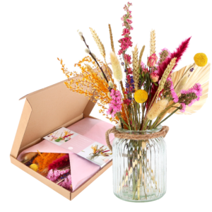 Gedroogde bloemen zijn al een tijdje helemaal in. En waar gewone bloemen het snel afleggen bij zomerse temperaturen, blijven deze prachtig. Bloompost stelde deze lieflijke ‘Bloomposy’ samen – en geeft ook handige tips mee voor de ontvanger. Prijs: €13,95 + €2,95 verzendkosten | BloomPost.nl