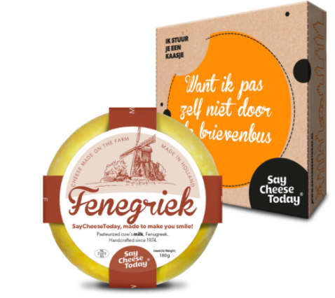Oerhollands, oerschattig en oerorigineel: een kaasje op brievenbusformaat. Voor die vriend(in) die gek is op tosti’s of borrelen met good old blokjes kaas. Je kunt kiezen uit verschillende smaken, zoals naturel, fenegriek, kruiden, en pesto. Prijs: €9,95 + €2,95 verzendkosten | Saycheesetoday.nl