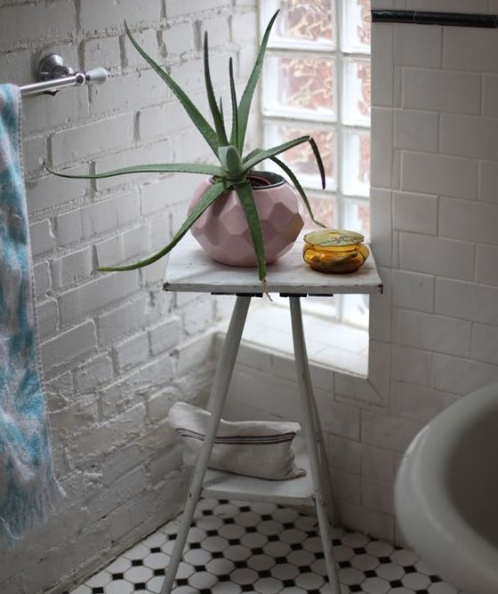 De bamboe is niet alleen mooi als houtsoort in de badkamer, maar ook als plant. De plant past zich gemakkelijk aan en is daarom geschikt voor bijvoorbeeld een vochtige badkamer. Plaats de bamboe in een hoge vaas met een paar kiezelsteentjes, vul regelmatig de vaas bij met wat water.