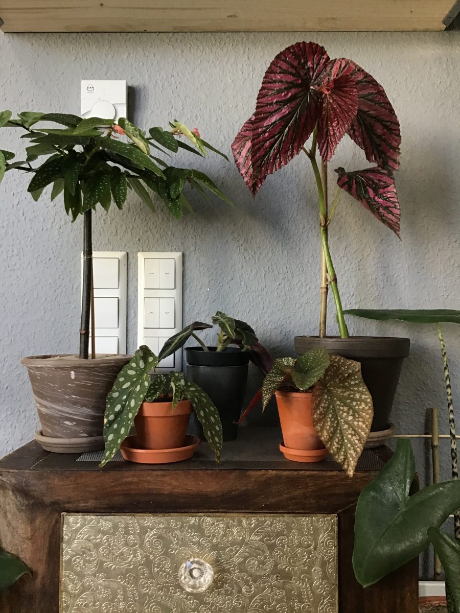 Wel licht – géén felle zon alsjeblieft. Ze heeft matige dorst en houdt zeker niet van natte voeten. Als je ervoor zorgt dat de bodem altijd licht vochtig blijft, dan zit je goed. Op 123planten.nl lees je meer tips – en zie je ook enkele van de vele soorten begonia’s.