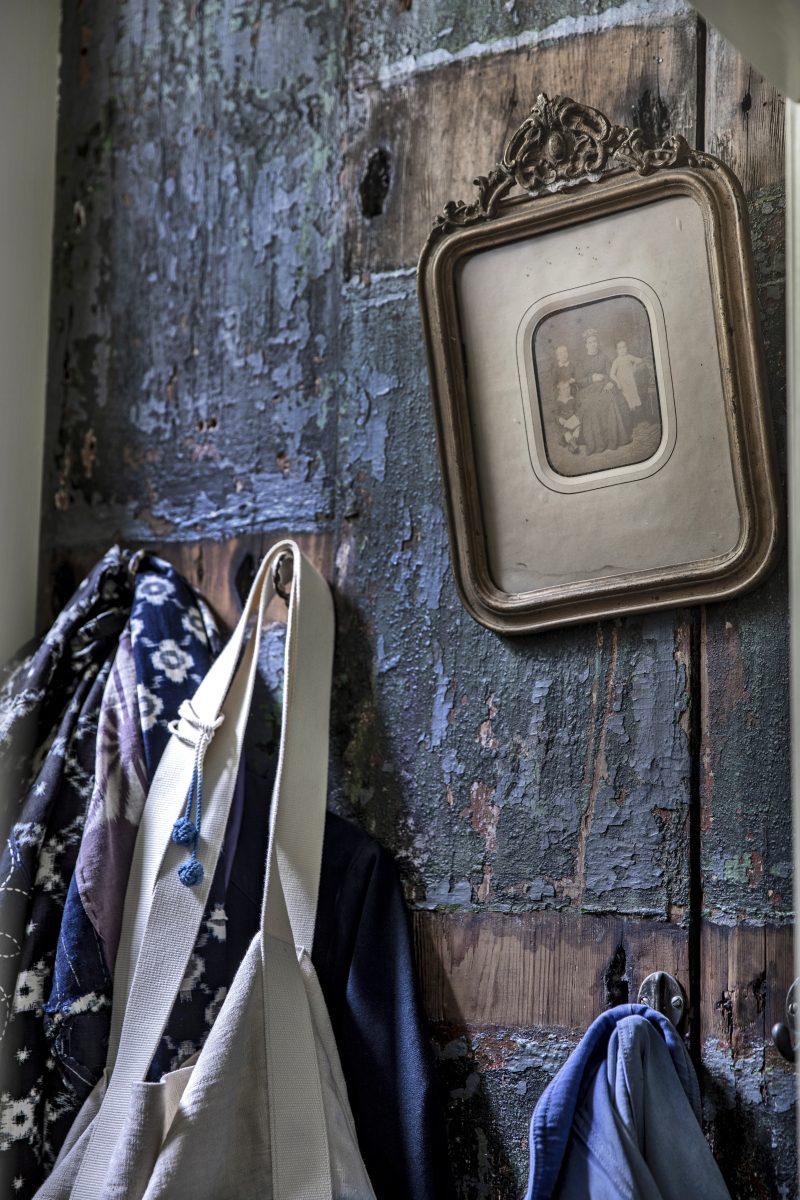 Veel originele elementen waren aan vervanging toe. Om de rijke geschiedenis van het huis te eren, wilden Elina en Erik zo veel mogelijk authentieke materialen gebruiken. Zoals voor de houten lambrisering in het halletje. Elina: “We vervingen die door hout van vervallen strand-huisjes. Geloof het of niet, maar dat bleek duurder uit te vallen dan wanneer we nieuwe materialen hadden gebruikt, gezien het aantal manuren dat ermee gemoeid is.” Ze borstelde de gerecyclede lambrisering om verfschilfers te verwijderen en voorzag het van een laag vernis om afbladderen te voorkomen. Het resultaat? Elina: “Ik ben er blij mee. Dat je onvolkomenheden ziet, vind ik niet erg. Daar hou ik juist van.” Daarom is ze ook een groot fan van de originele vloer met brede planken. Met z’n butsen en kieren – en hier en daar een pietsie afgesleten – is het een voorbeeld van perfecte imperfectie. Elina: “De tijd heeft hier zijn stempel op gedrukt en dat is oké.” Om het huis verder in oude glorie te herstellen kreeg ook de haard, door de vorige bewoner volledig verborgen, een facelift. Het stel plaatste er een antieke maar functionele houtkachel. Ten slotte vervingen ze de keukenvloer. De terracotta-tegels vonden ze via sturmendekker.nl die tweedehands bouwmaterialen verkoopt. Waarschijnlijk zijn ze net zo oud als het huis zelf.