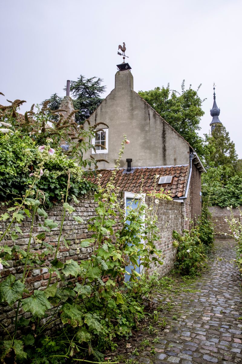 Haar monumentale vissershuisje meet slechts 52 vierkante meter, maar bevat een wereld aan Zeeuwse schatten. Uit elk detail spreekt Elina Poppe’s liefde voor de zee, textiel, vintage en de kleur blauw in al haar schakeringen. In het Zeeuwse Veere ligt de geschiedenis letterlijk op straat. Het huis van Elina Poppe is daar het klinkende bewijs van. Aan een voetpad met oude keien ligt haar woning, het monumentale vissershuisje uit 1635. Slechts 52 vierkante meter groot, maar tot in elk hoekje en nisje sfeervol ingericht. Toen ze het in 2016 samen met haar partner Erik kocht, was er een berg werk aan de winkel. “Het is een beschermd monument, dus we mochten geen muren slopen, ramen vervangen of vloerverwarming installeren. Afgezien daarvan moest bijna alles opnieuw gebeuren: sanitair, verwarming, dakrenovatie, isolatie en herbedrading.”