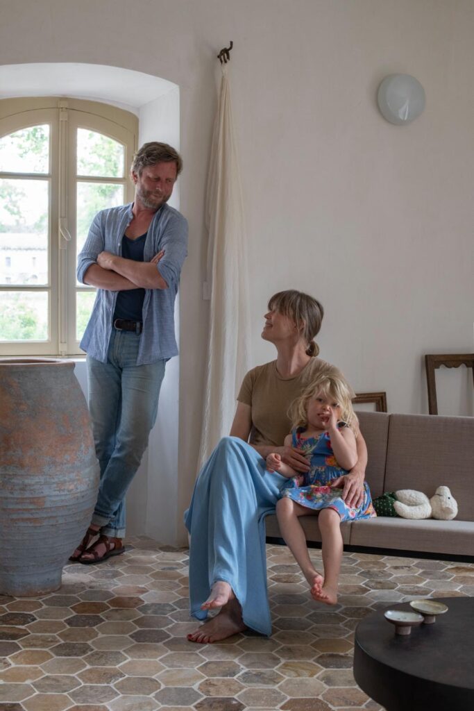 De binnentrappen hebben ze moeten laten maken, vertelt Sofie. “Er was alleen een trap buitenom. Lokale vaklui zijn ingehuurd voor de trap, de extra openingen, de elektra en het pleister- en loodgieterswerk, de kleine klussen hebben we zelf gedaan. Michel is van het hout, hij heeft de meubels gemaakt voor in de keuken. Al het tegelwerk in de badkamers heb ik gedaan, daar ben ik best trots op. We hebben alles al doende geleerd. Het is zo gaaf om het huis onder je handen te zien veranderen tot wat je in je hoofd had. We houden ervan om op zoek te gaan naar de juiste materialen, ook al moeten we daarvoor flink omrijden. We waren bijvoorbeeld heel blij met het marmer dat we ook in ons eerste huis hebben verwerkt.” De binnenplaats heeft misschien wel de grootste metamorfose ondergaan. “De eerste keer dat we kwamen kijken, troffen we er een soort modderige jungle aan. Alles was overwoekerd en groen uitgeslagen. We hebben eerst de grond egaal gemaakt, zelf een muurtje gebouwd en het pleintje laten betegelen en daarna het zwembad gebouwd. Alles op een manier alsof het altijd zo is geweest, het huis moet zowel vanbinnen als vanbuiten dezelfde onnadrukkelijke sfeer uitstralen. We hebben de kamers bewust vrij leeg gehouden om meer ruimte te geven aan de gasten. Als je hier vakantie wilt vieren met vrienden of familie wil je je spullen en boodschappen kwijt kunnen zonder dat het meteen een gevoel geeft dat het volstaat.”