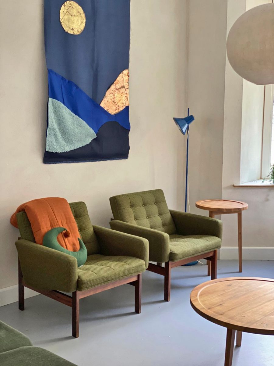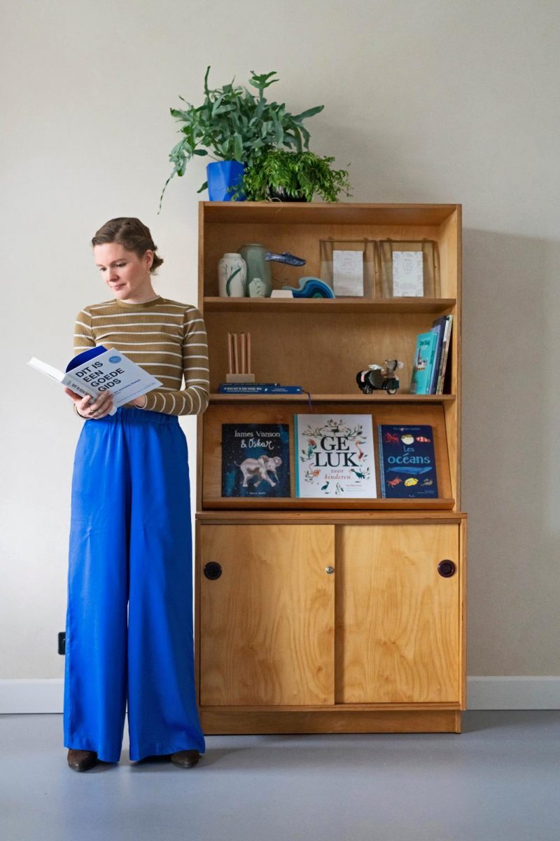 We kiezen uiteindelijk voor de Cocoa-lijn: een linoleum vloer met cacaoschillen. In de Zaan-streek wordt veel cacao verwerkt. De schillen zijn een restproduct en daar kun je eigenlijk niets mee. Of nou ja, daar dacht Marmoleum dus anders over, want ze zijn nu verwerkt in onze vloer. Lichtgrijs en donkerblauw, allebei met een bruine chocoladespikkel erin. Een visuele knipoog, naar onze granitovloer in de gang. Na het leggen genieten we van de aardse, kruidige geur die vrijkomt. Het is weer gelukt, de linoleumvloer is een duurzame oplossing waar we elke dag blij van worden.