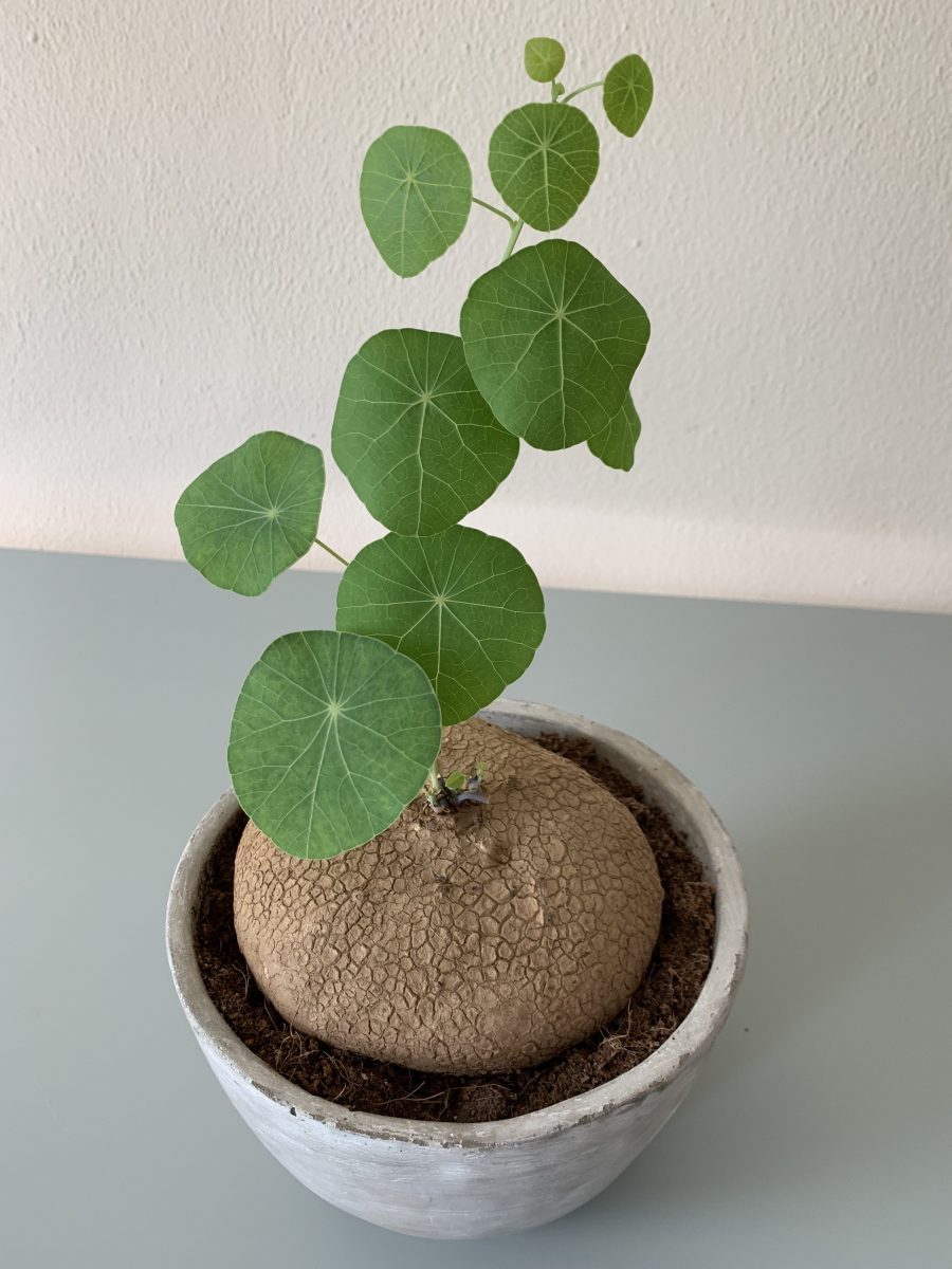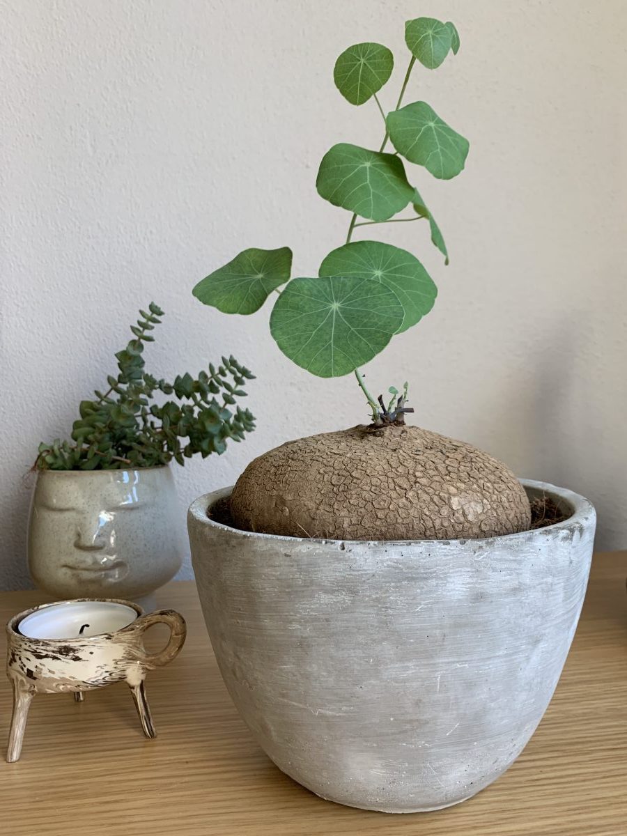 De Stephania is een knolplant, die behoort tot het geslacht van bloeiende planten (Menispermaceae). Hij groeit oorspronkelijk in Thailand en Australië – daar wikkelt hij zich om bomen heen. De knol zelf biedt nou niet direct een mooie aanblik. Zijn bijnaam luidt dan ook exotische aardappel, ‘holy potatoe’ in het Engels.