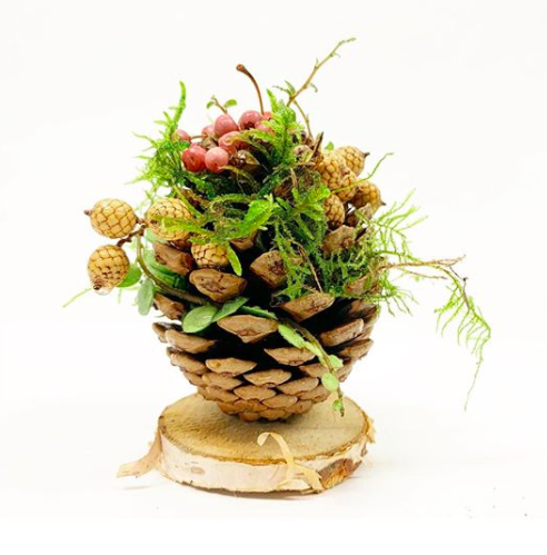 Van een dennenappel kun je ook een mini kerststukje maken. De gaatjes kun je namelijk opvullen met wat je maar wilt. Je kunt er natuurlijk ook alleen zo’n klein snoertje met lampjes omheen wikkelen, dat alleen staat al leuk. Geen tijd of zin om zelf aan de slag te gaan, of inspiratie nodig? Plantenzaak Plantaardig in Middelburg verkoopt gevulde dennenappels. Je kunt ‘m ook kopen in een variant met een cyclaam of amaryllis (hippeastrum) bol erbij. Dan kun je na de kerst langer genieten van nieuw leven. Plantaardig bezorgt de dennenappels ook – origineel kerstcadeautje! Hij komt namelijk in een prachtige doos… Kopen kan via plantaardigmiddelburg.nl