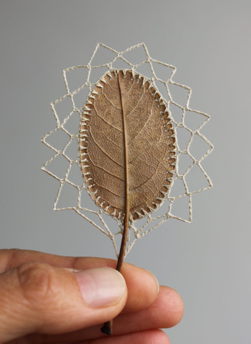 De Duitse Susanna Bauer maakt de meest prachtige creaties van vondsten uit de natuur. Door bijvoorbeeld plataanblad een vulling te geven van geweven katoen. Of een magnoliablad een krans van ragfijn haakwerk. Zo vereeuwigt ze de vergankelijkheid. Mooi!