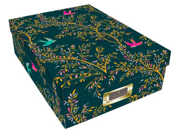 Eentje om vrolijk van te worden, deze opbergdoos van de Britse ontwerpster Sara Miller. 33L x 23,8B x 10H cm |€ 25,95 | Blue Print Collections via bol.com