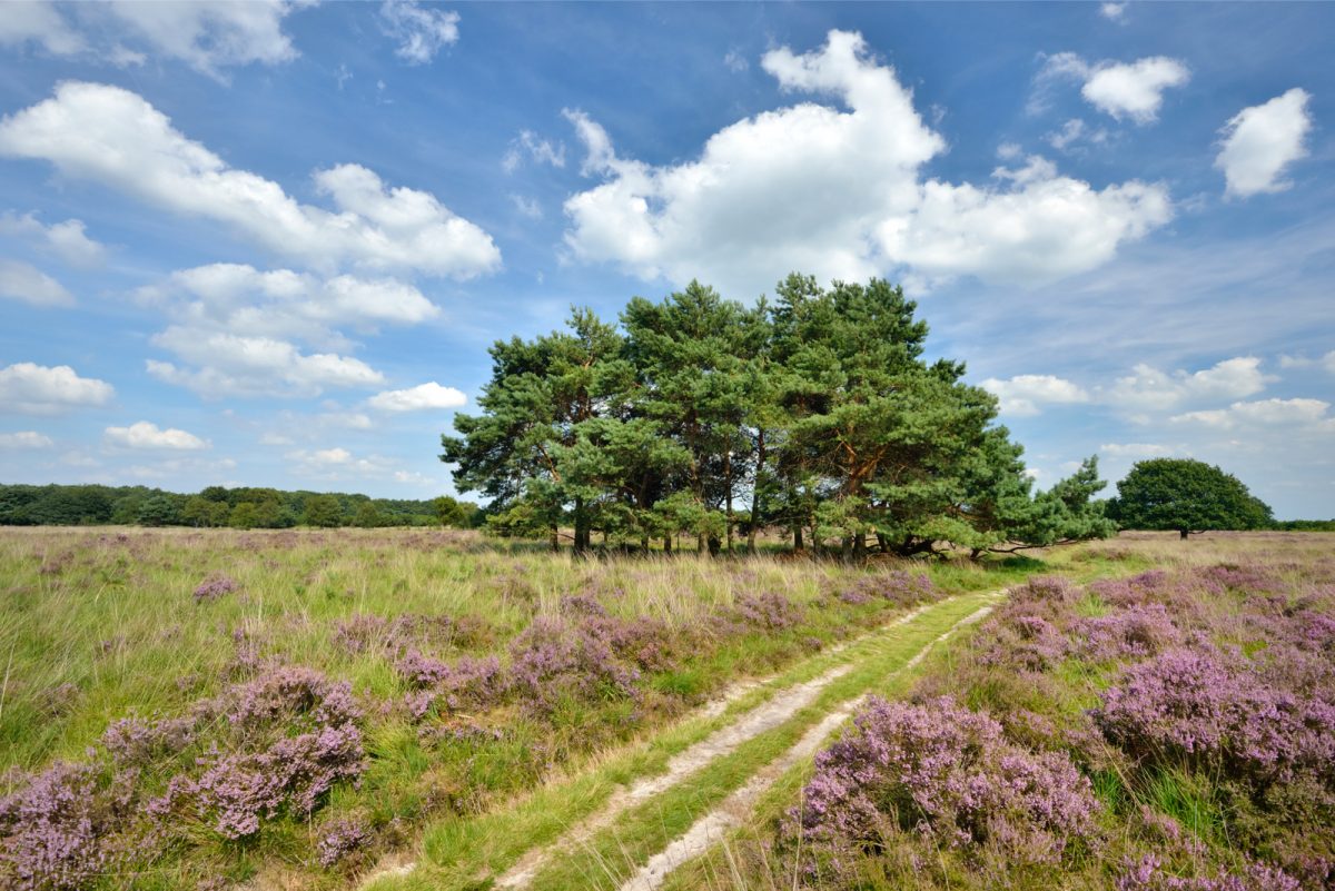Zandvlaktes en bos liggen achter ons. Nieuw terrein opent zich. We lopen een fleurig, felgeel bloemendek tegemoet, gekleurd door jakobskruiskruid. Hier en daar zorgen de zwart en dieprood gekleurde vleugels van de sint-jakobsvlinder voor extra visueel genot. Via een houten hek lopen we de heide op. In deze tijd van het jaar komt de heide in bloei, zo’n drie weken lang in augustus, tot in september. Van Lienden: “Tussen de struik- en dopheide staat ook kraaiheide, een wat minder voorkomende soort.” Kraaiheide heeft zijn naam te danken aan het feit dat de vruchten door kraaien gegeten worden. Zelf hoeven we het niet te proberen: de vruchten schijnen niet zo smakelijk te zijn. Daarnaast bloeit de plant vroeger in het seizoen dan zijn soortgenoten, in mei en april.