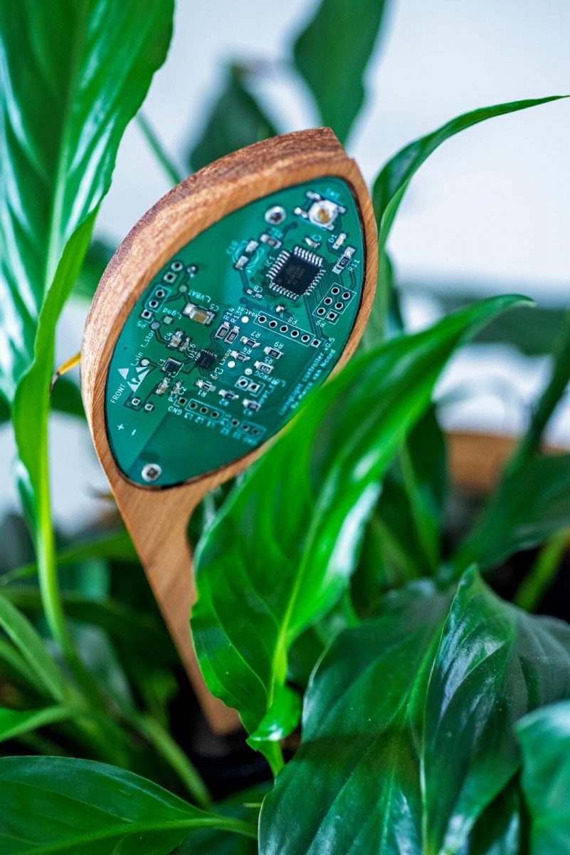 “Ik wilde verder op deze weg. Plant-e, een spin-offbedrijf van de universiteit van Wageningen gaf mij de mogelijkheid met hun technologie aan de slag te gaan: met levende planten elektriciteit maken. Planten zijn voor de meeste mensen een decoratie-object. That’s it. Natuurlijk krijgen ze water en soms een scheutje voeding, maar krijgen ze verder wel aandacht? Kijk eens echt. Elke dag weer. Verwonder je over hoe een plant zich ontwikkelt en het beste gedijt. Hoe de bladeren zich naar het licht bewegen. Ze behoren tot de oudste wezens op onze aarde, met een veel complexer dna dan wij hebben. Er valt nog zo veel te ontdekken. Geef ook eens liefde aan jouw plant en let dan op wat er gebeurt. Kom mee, we gaan even een plant aaien. Deze Spathiphyllum (lepelplant) in de glazen kom is verbonden met een biobrandstofcel. De plant geeft overtollige glucoses af en de natuurlijk voorkomende bacteriën in de grond verteren deze glucoses. Zij geven op hun beurt elektronen terug aan de biobrandstofcel. Deze cel is verbonden met elektriciteitsdraadjes aan de led-lampjes rondom de plant. Als ik zachtjes over de bladeren strijk, springen de lampjes aan. De plant geeft energie! Dit is mijn Living Light. Als ik niet goed voor de plant zou zorgen, zou ik nooit zo veel energie krijgen.”