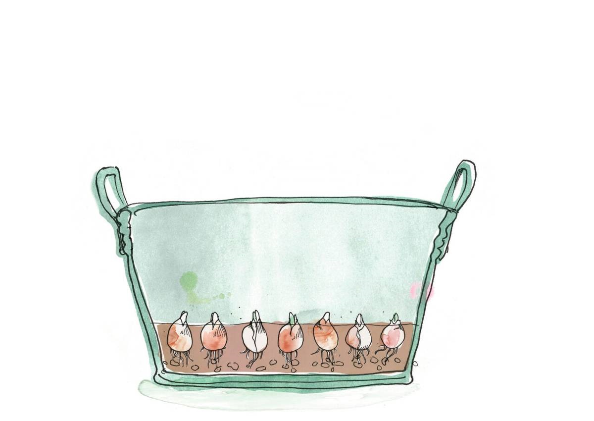 Lees ook: Tulpen tips & tricks - Maak dan een laag met iets eerder bloeiende bloembollen, zoals hyacinten, blauwe druifjes en narcissen, en bedek ook die met potgrond.