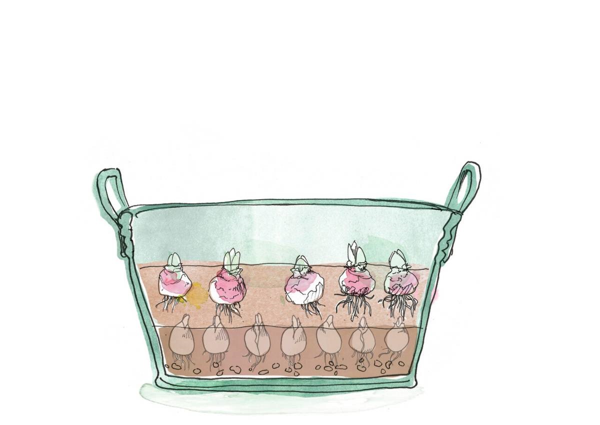Uiterlijk november moeten bollen echt de grond in. Als je het nu doet, heb je in het voorjaar plezier van je ‘lasagne-beplanting’, verschillende soorten bloembollen die je in meerdere laagjes in één pot plant.