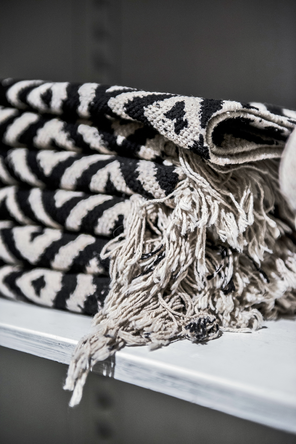Overal in huis geven deze vloerkleden met zwart-wit patroon diepte, of het nu in de woonkamer, keuken, badkamer of gang is. Leg er één of meer in de ruimte. Ook verkrijgbaar in blauw en in verschillende motieven. Kijk in de webshop voor meer informatie. Materiaal: jute, linnen | Afmetingen: 130 x 45 cm | Prijs: €27,50