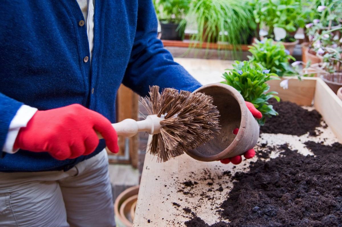 3. Stevige bloempotborstel van beukenhout en natuurvezel, om plantenpotten snel en goed schoon te maken, € 15,95, www.dewiltfang.nl
