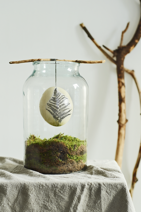 Met een beetje handigheid en wat paasinspiratie geef je deze Pasen een persoonlijke touch. Zo maak je een vrolijk lente tafereel voor op de paastafel. Bijvoorbeeld dit hangend ei in vaas.