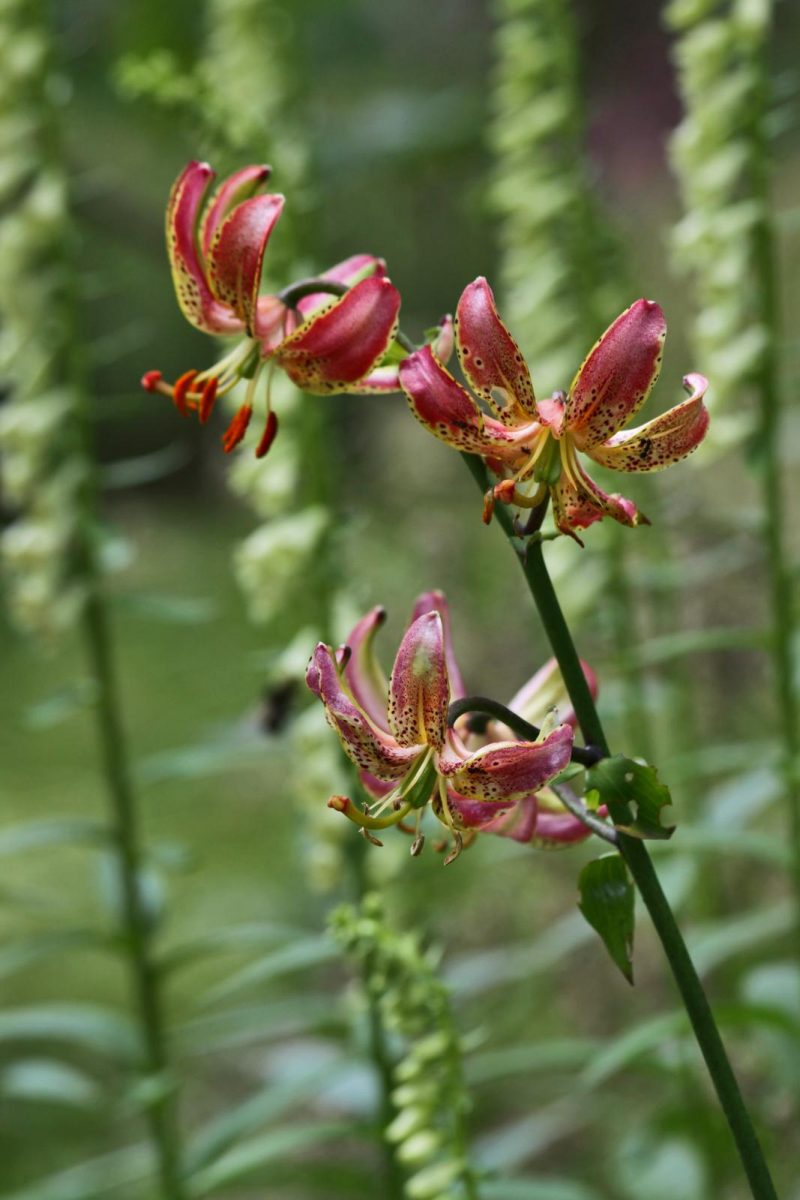 “De lange stengels komen het mooist uit wanneer ze boven een wat lagere beplanting uit kunnen torenen. Lagere, bloeiende planten zoals zomeraster Kalimeris ‘Madiva’ en Aster macrophyllus ‘Twilight’ wisselen het vingerhoedskruid af qua bloeitijd. Een goede match tíjdens de bloei is de paarse Salvia nemorosa ‘Caradonna’. Ook siergrassen als blauwgras (Sesleria autumnalis) en Mexicaans vedergras (Nassella (Stipa) tenuifolia) groeien fraai aan de voet van Digitalis. Iets meer in de schaduw vind ik de combinatie met sneeuwwitte veldbies (Luzula nivea) en Turkse lelie (Lilium martagon) erg geslaagd. Naast Digitalis lutea kun je Digitalis grandiflora proberen, die heeft grotere bloemen en blijft lager. Ook mooi, met een nóg sterker architectonisch effect, is Digitalis parviflora, die een mooie roestbruine bloemkleur heeft.”