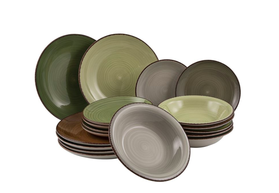 5. Mooi groen is niet lelijk Lekker variëren met kleuren en vriendelijk geprijsd bovendien, deze aardewerken en handgeschilderde set ‘Nature’, bestaande uit 18 items. Prijs: €39,99 Waar: Xenos