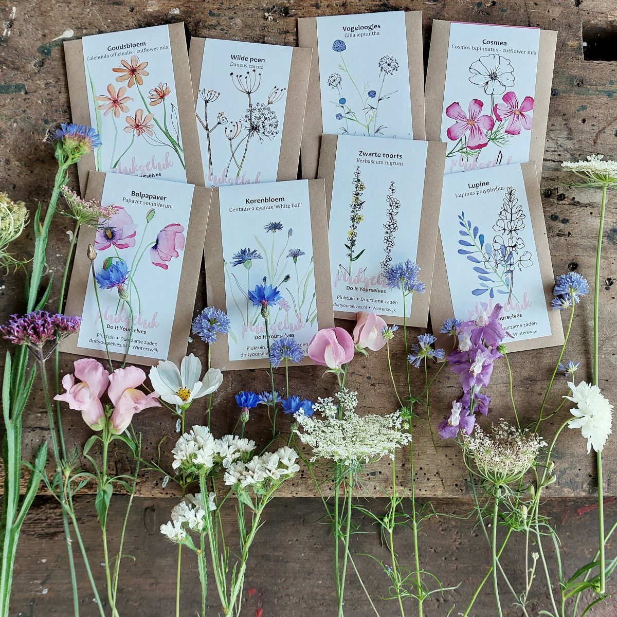 Marloes heeft in Winterswijk haar eigen pluktuin. De prachtige bloemen kweekt ze op een duurzame manier en de (schone) zaden verkoopt ze via haar webshop. Je kunt ze per soort kopen (à €2,95 per zakje) maar ook per Plukgeluk zaaipakket – in verschillende kleurschakeringen (€ 16,50). Extra leuk: Marloes is illustrator van beroep dus reken maar dat het met de vormgeving van de verpakkingen wel goed zit! Bloemeninspiratie op Instagram: @doityourselves_plukgeluk