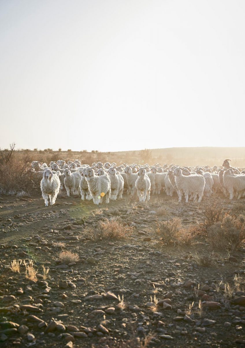 Handgeweven tapijten geïnspireerd op het rauwe landschap van de Zuid-Afrikaanse Karoo-woestijn. Samen met locale vrouwencollectieven maakt Frances van Hasselt de mooiste tapijten van mohair. Met een speciale vermelding voor de angorageit die zorgt voor het delicate materiaal dat van nature duurzaam is. tapijten van mohair Droog en vrijwel onbegroeid. Zo zou je de Karoo, een streek die ongeveer een derde van Zuid-Afrika beslaat, het beste kunnen omschrijven. Het landschap is er ruig, met rotspartijen en hier en daar een stoffige weg. In de halfwoestijn – er is nog wel íets van regenval – wisselt verzengende hitte zich af met ijzige kou. Alleen planten die gedijen in deze temperaturen overleven hier: grassen, stekelige struiken en succulenten. Het gebied dat vooral indruk maakt vanwege z’n leegheid is dé inspiratiebron van Frances van Hasselt; zij maakt tapijten (en knitwear en dekens) van mohair. En dat terwijl ze als tiener heel andere plannen had. “Ik groeide op in Prins Albert, een dorpje in de West-Kaap. Op een boerderij waar mijn familie angorageiten houdt voor hun mohair. Ondanks mijn passie voor hun wol – het is prachtig materiaal dat glanst als zijde – droomde ik van de grote stad en een carrière in de mode. Mijn vader zag me liever niet vertrekken en probeerde me ervan te overtuigen dat mode begint bij de stof en dat de kwaliteit daarvan weer afhangt van de zorg voor het land en de dieren. Maar de stad trok te veel.”