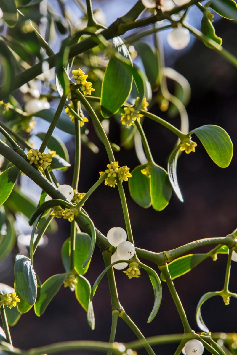 - In de kleverige bes van de mistletoe zit een pitje. Wrijf de bessen in een schorsspleet aan de onder- of zijkant van de tak.