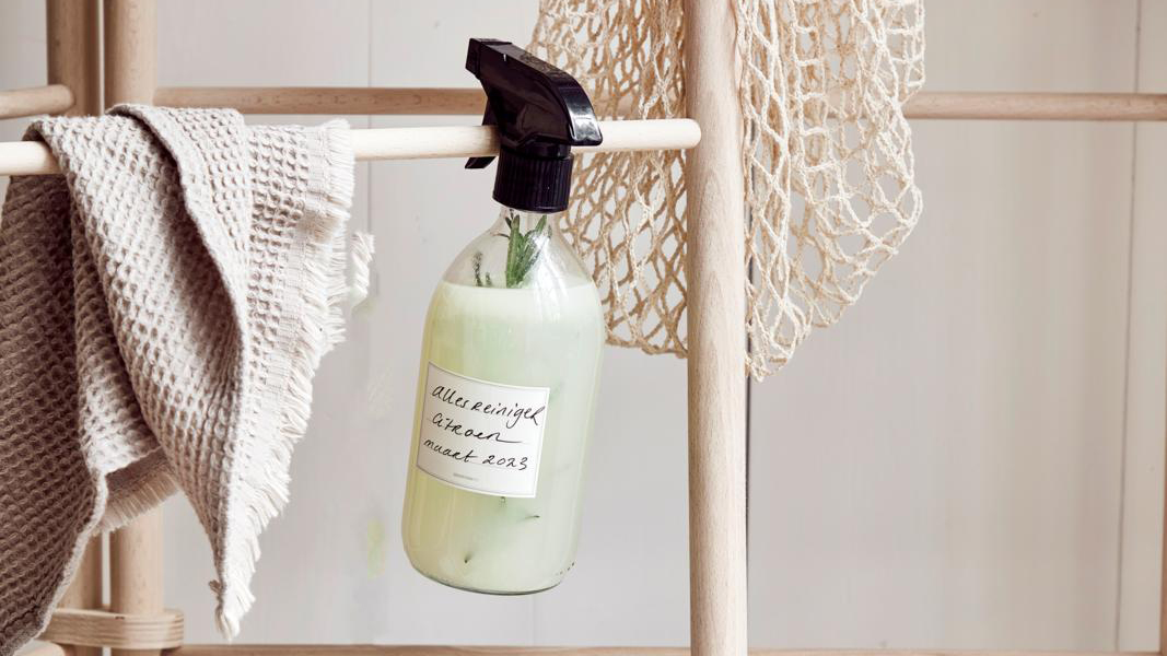 In een handomdraai gemaakt: natuurlijke allesreiniger. Zoek nu alleen nog een mooie (glazen) spuitfles, et voilà, daar heb je je zelfgemaakte schoonmaakmiddel.